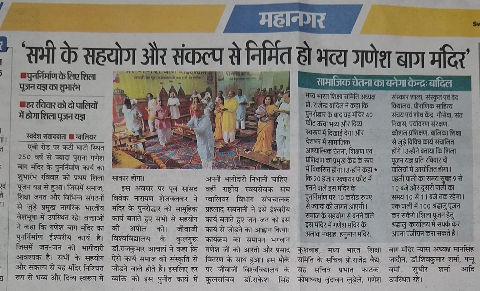 गणेश बाग शिला पूजन कार्यक्रम 28.09.